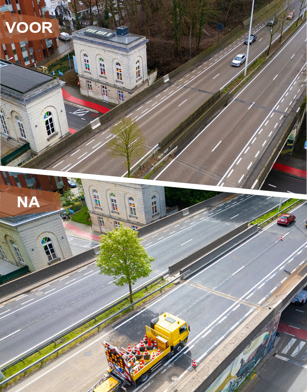 Beeld voor en na werken aan het brugdek