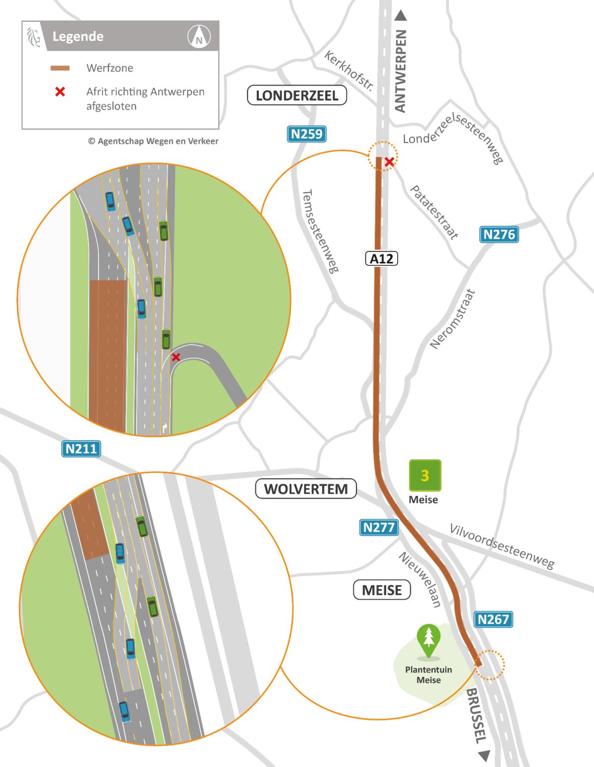 Er gebeurden al wat voorbereidingen, maar op 9 april start het Agentschap Wegen en Verkeer met de ‘echte’ werken op de A12 tussen Meise en Londerzeel. Tijdens de eerste fase - die loopt tot juni - moeten weggebruikers rekening houden met bijkomende hinder, onder meer door afgesloten op- en afritten en aangepaste verkeerssituaties.