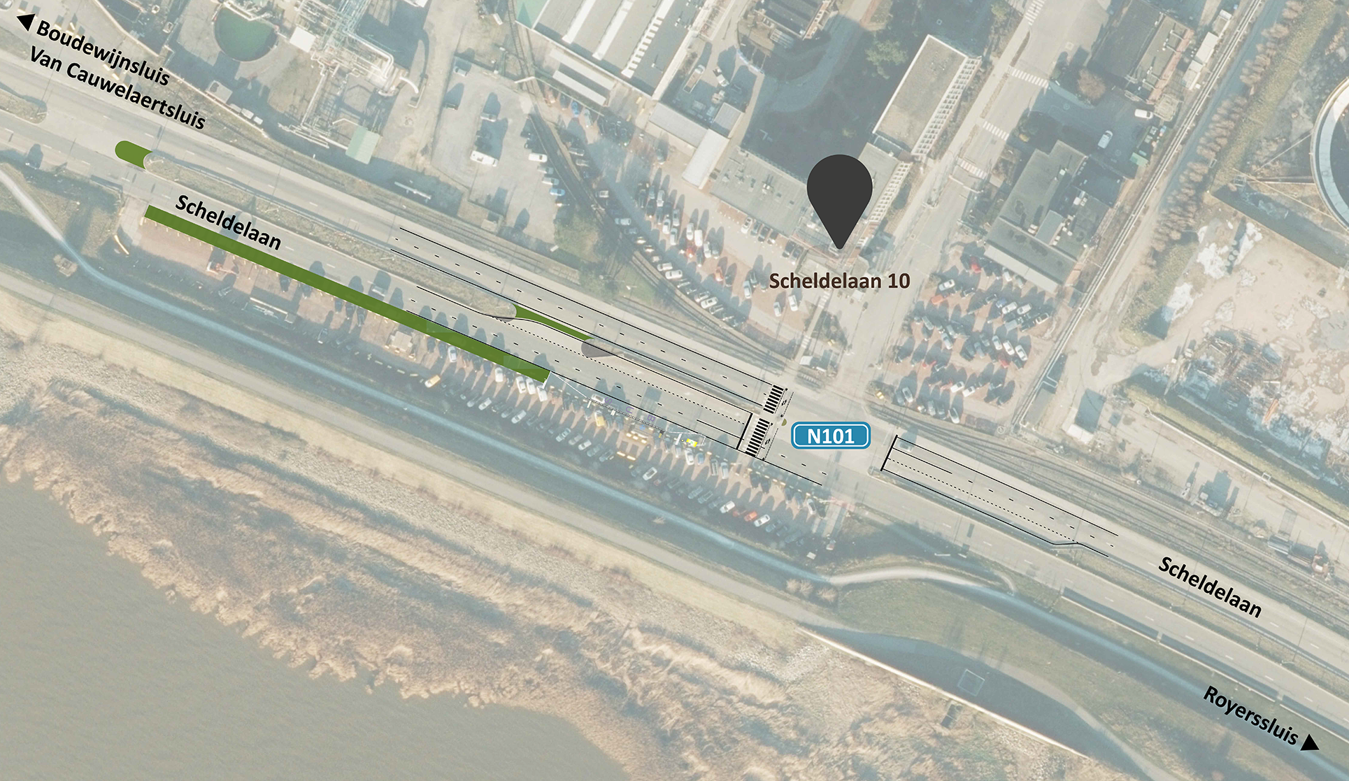 Dagelijks passeert er heel wat zwaar verkeer op de Scheldelaan (N101). Dat zorgt voor slijtage, waardoor het wegdek aan een grondige vernieuwing toe is. Gelijktijdig met die werken voeren we een aantal verbeteringen uit over het traject vanaf het Van Cauwelaert- en Boudewijnsluiscomplex tot aan de Zwarteweg richting Antwerpen. Zo verhogen we ook de verkeersveiligheid en verbeteren we de doorstroming op diverse (kruis)punten.