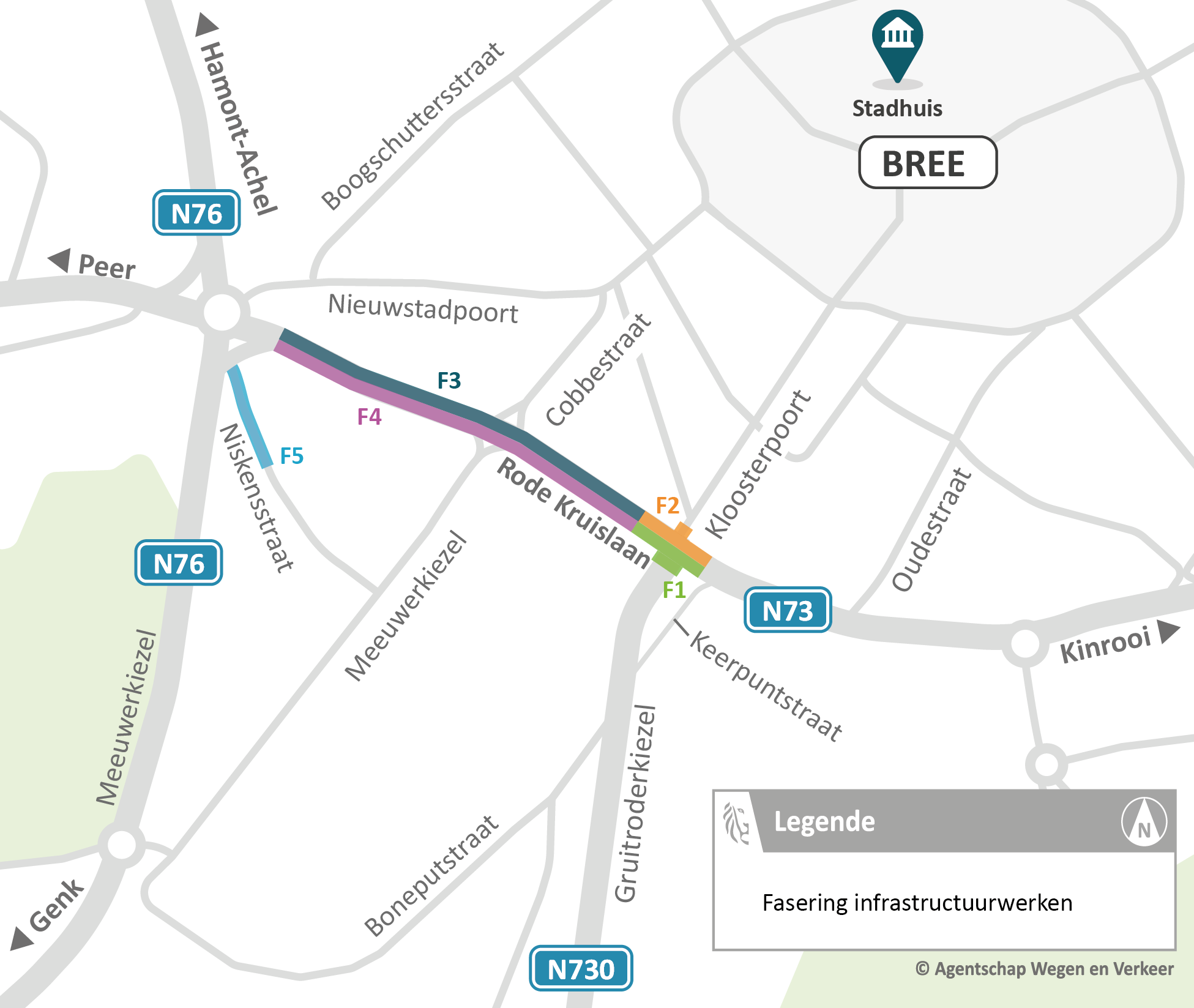 Het Agentschap Wegen en Verkeer (AWV) gaat in Bree op de Rode Kruislaan (N73) vrijliggende enkelrichtingfietspaden aanleggen en de riolering vernieuwen.