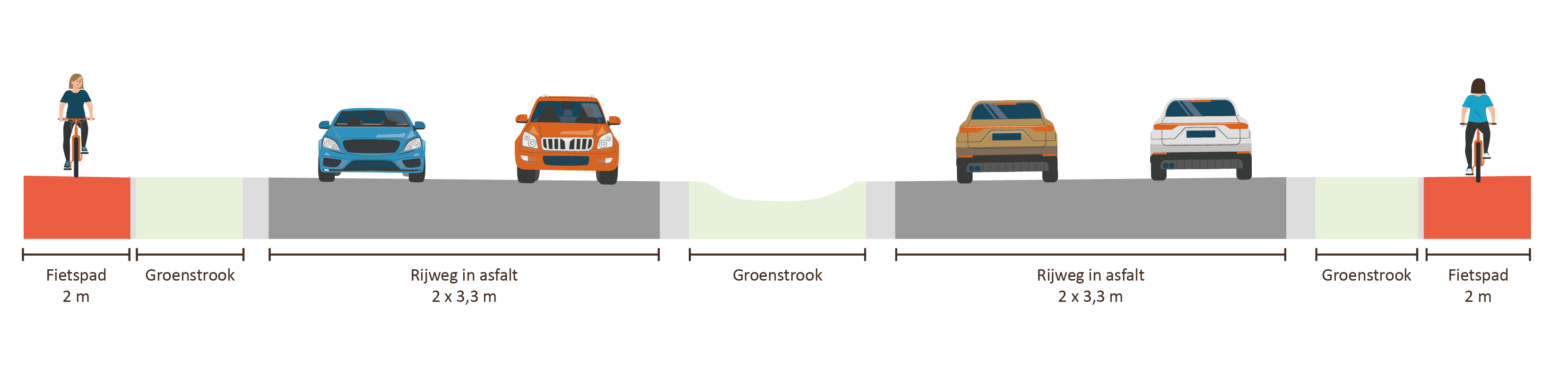 - De fietspaden worden aangelegd in asfalt.